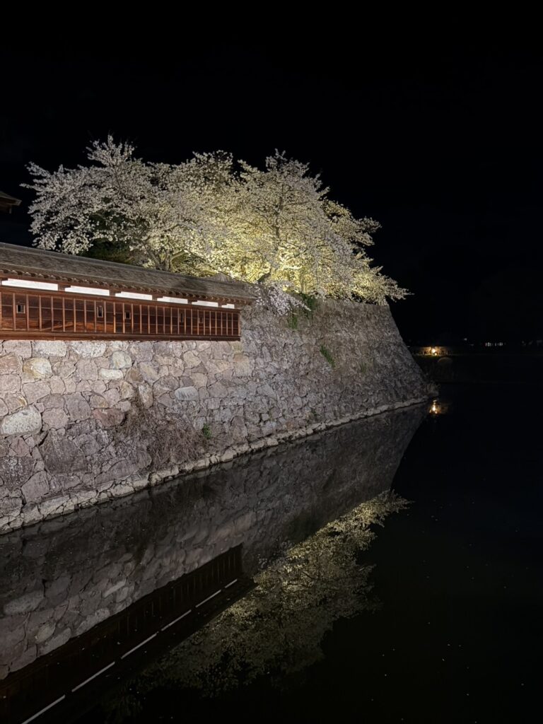 印象的だったのは、お堀の水面に映り込んだ「逆さ桜」。